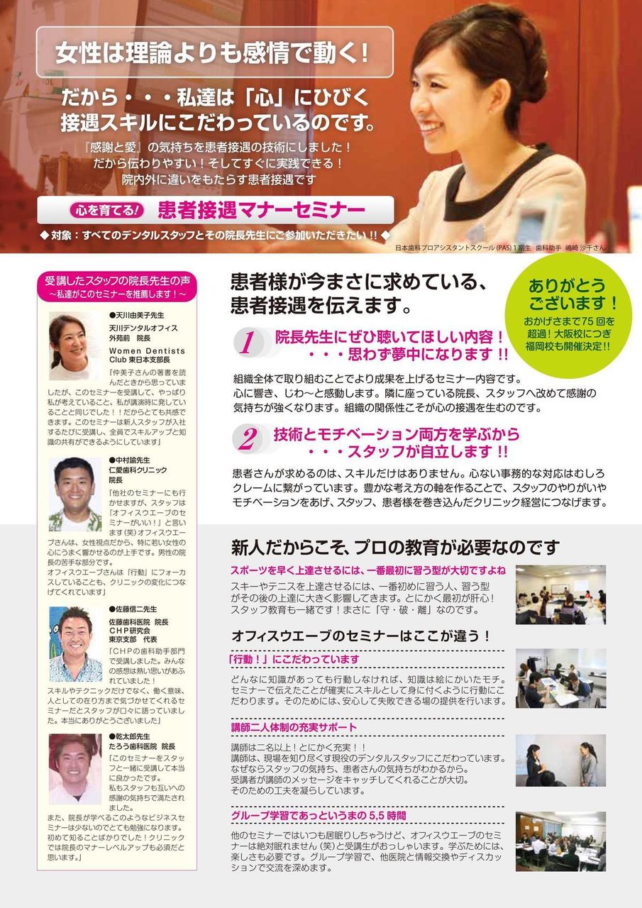 1、心を育てる!患者接遇マナーセミナー in 福岡 主催:株式会社オフィスウェーブ