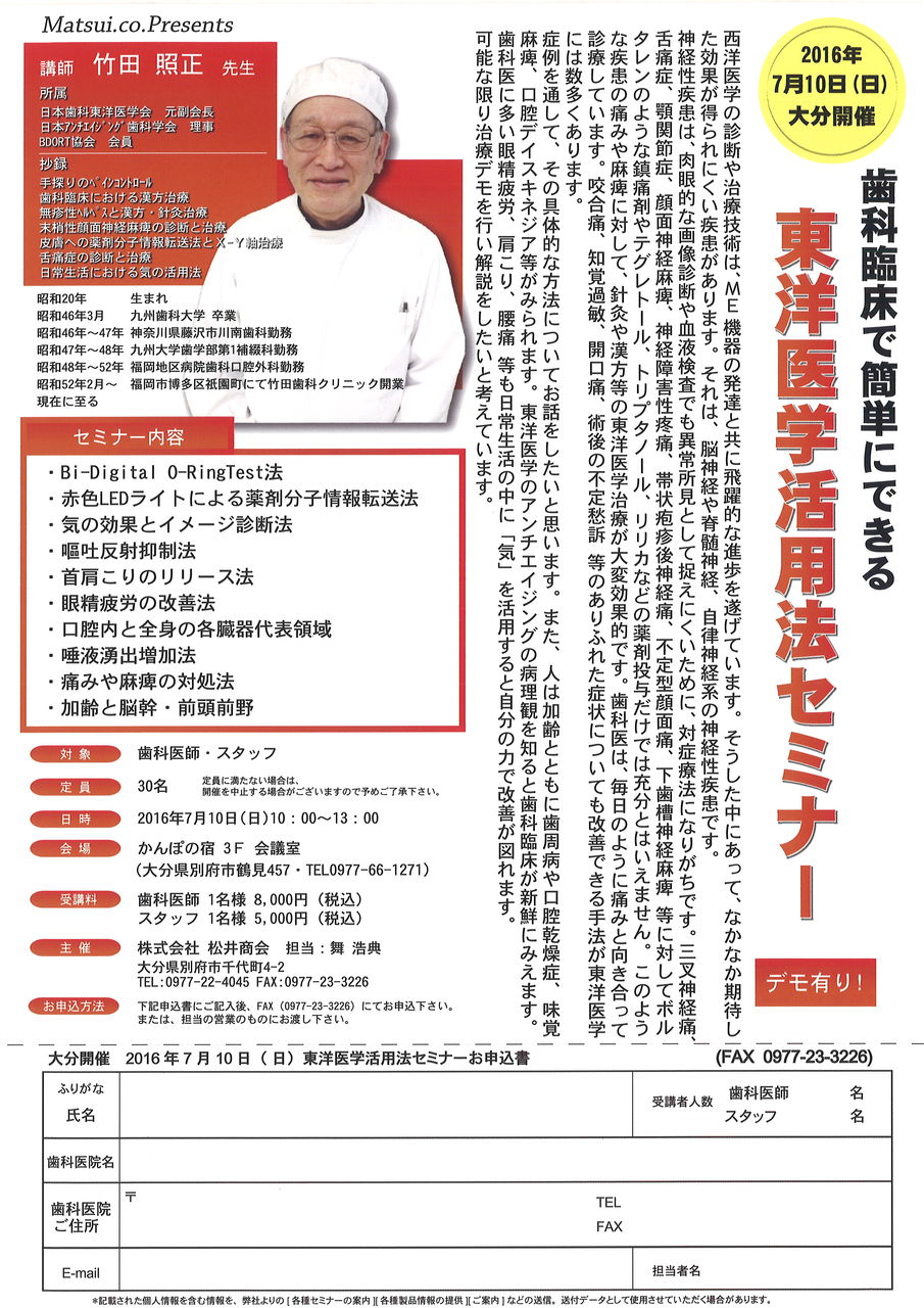 1、歯科臨床で簡単にできる 東洋医学活用法セミナー 主催:松井商会