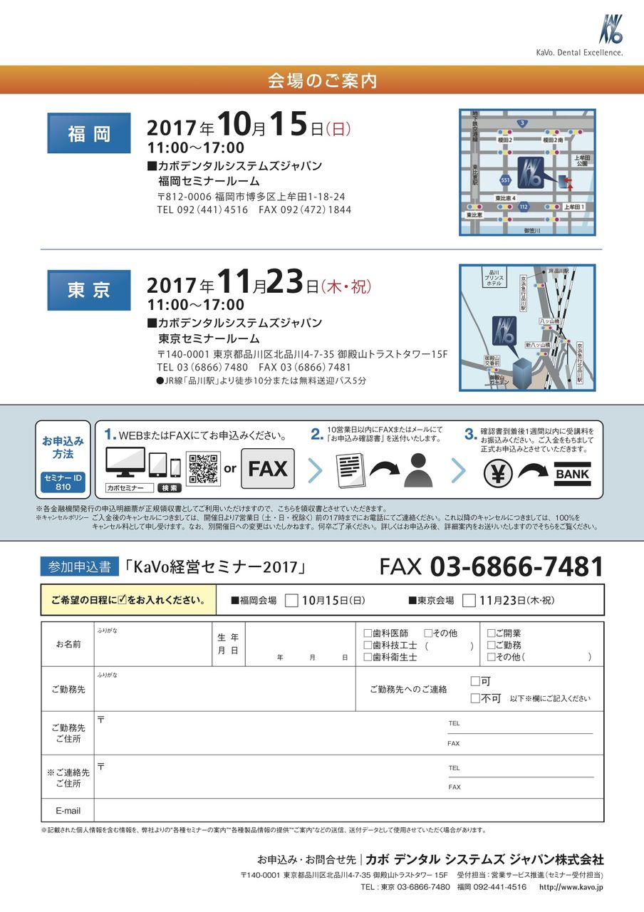 2、KaVo経営セミナー2017 開業、改装、継承の秘訣 主催:カボデンタルシステムズジャパン株式会社