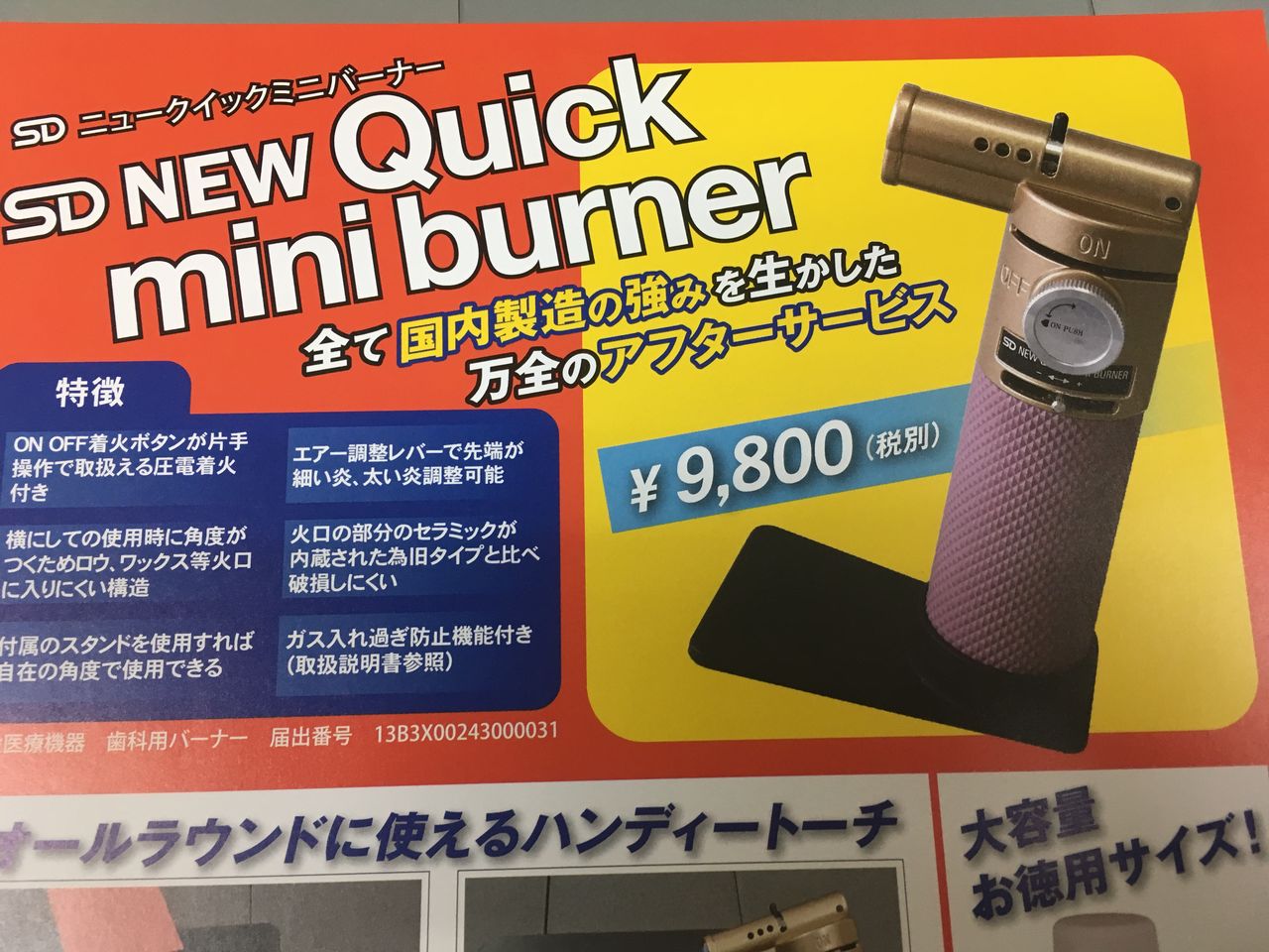 3、ニュークイックミニバーナー サンデンタル株式会社