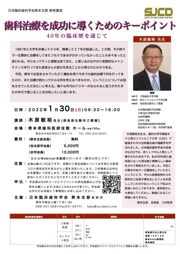 主催:日本臨床歯科学会熊本市部 ★WEBによる生配信あり