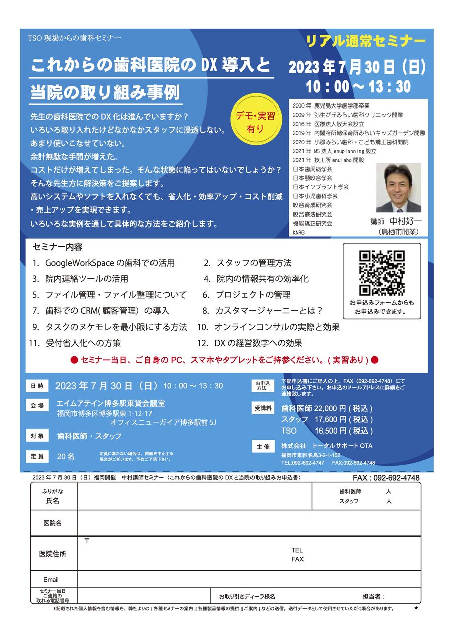 受講料:歯科医師46,200円,スタッフ35,200円(税込)